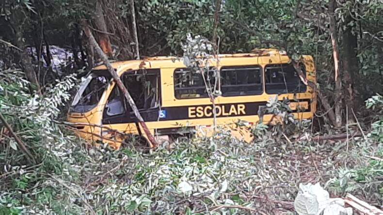 Grande livramento: ônibus escolar cai em ribanceira no Córrego da Estiva
