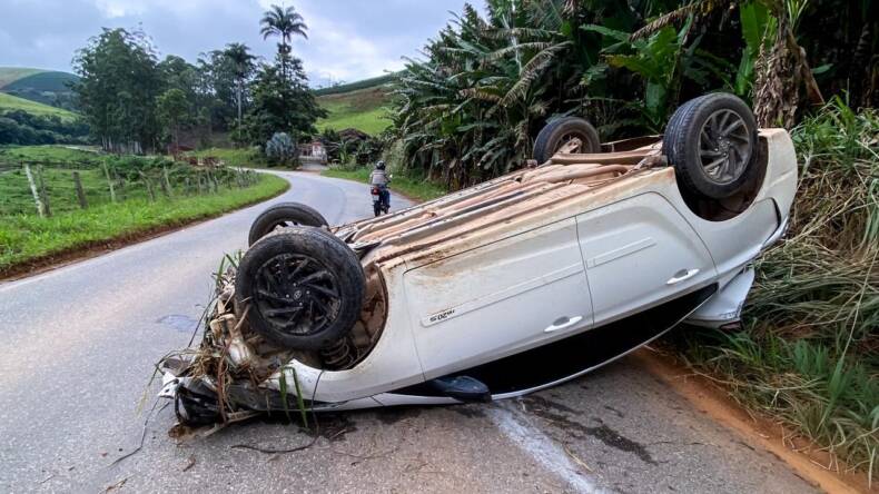 Motorista capota carro na BR entre Ipanema e Manhuaçu e sai sem ferimentos