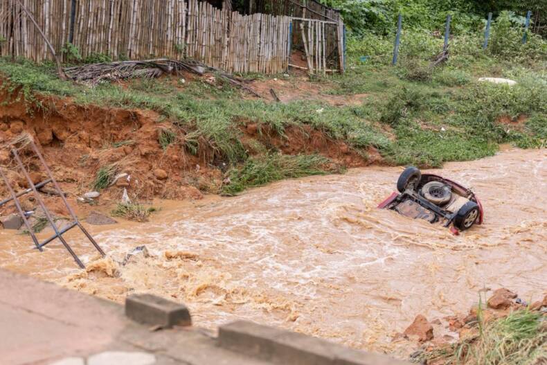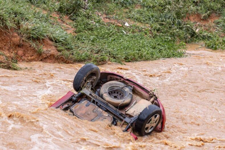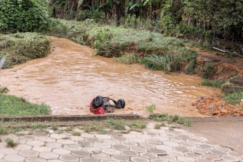 Carro é arrastado por correnteza após fortes chuvas em Ipanema (MG)