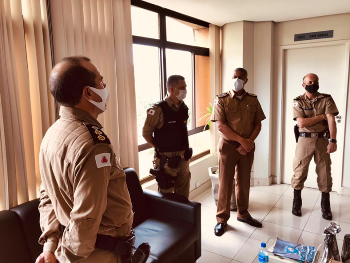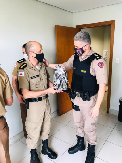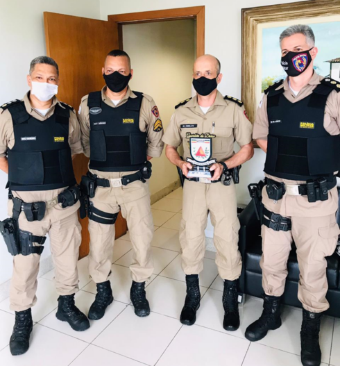 O Comandante, Ten Cel Márcio e o Subcomandante do 47º BPM, Major Sandro, foram pessoalmente nesta quinta-feira à cidade de Belo Horizonte, no Gabinete do Comando Geral da Polícia Militar, para realizar a entrega do prêmio ao Excelentíssimo Senhor Comandante Geral da PMMG, Cel PM Rodrigo Sousa Rodrigues, ao Cel PM Chinelato e ao Ten Cel PM Amorim, sendo também entregue uma lembrança ao Sub Ten Antônio.