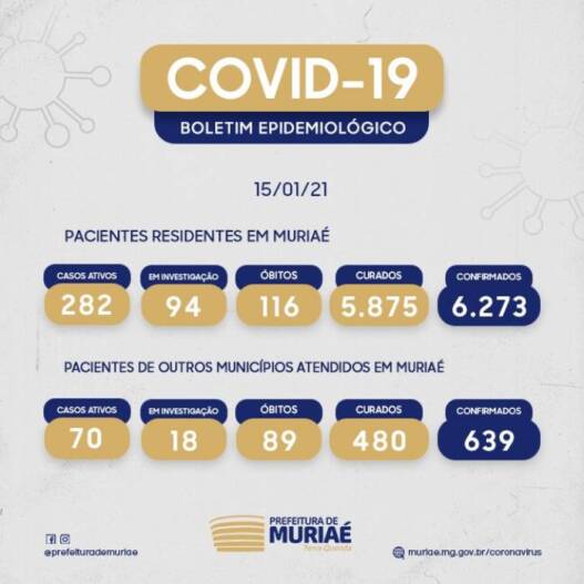 Nas últimas 24 horas, mais 55 casos de covid-19 foram confirmados em Muriaé. Foi o menor número de novas infecções registradas nos últimos 10 dias.