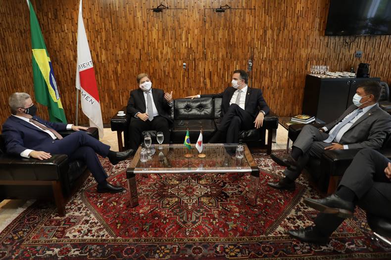 Presidente do Senado esteve na ALMG, na companhia dos também senadores Antônio Anastasia e Carlos Viana, para alinhamento de trabalhos