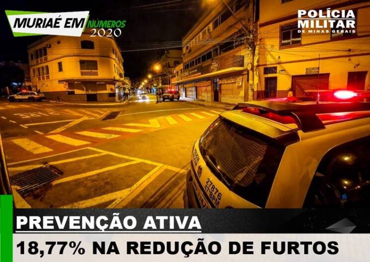 A Polícia Militar realizou o total de 1.686 operações policiais na cidade, realizadas com planejamento e inteligência, sempre em locais e horários estratégicos, onde exige maior demanda e atenção da nossa Instituição. Reduzimos em 18,7% os furtos ocorridos em Muriaé e ainda em 38,9% no número de roubos. Diminuir a violência é a nossa meta, no período apresentado, foram apreendidas o total de 309 armas de fogo, armas estas que poderiam gerar um grande mal a nossa sociedade.