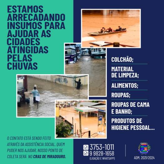 chuvas nenhuma cidade ou região está a salvo. Vamos fazer a nossa parte. O ponto de coletas está sediado no CRAS de Miradouro.