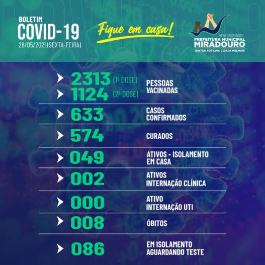 Confira abaixo o boletim epidemiológico, desta sexta-feira (28/05/2021).