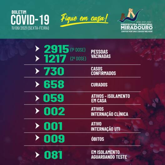 Confira abaixo o boletim epidemiológico, desta sexta-feira (11/06/2021).