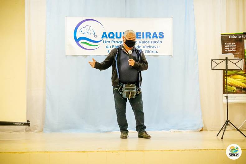 Buscando valorizar e fomentar a piscicultura ornamental na cidade e toda a região, a Prefeitura de Vieiras lançou na noite desta sexta-feira, dia 2, no auditório do Centro Administrativo, o AQUIVIEIRAS. Por meio do programa, os piscicultores da cidade e do distrito de Santo Antônio do Glória receberão assistência técnica gratuita para desenvolver suas atividades.