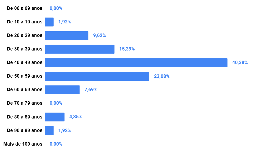 O percentual de casos registrados de acordo com a faixa etária ficou assim: