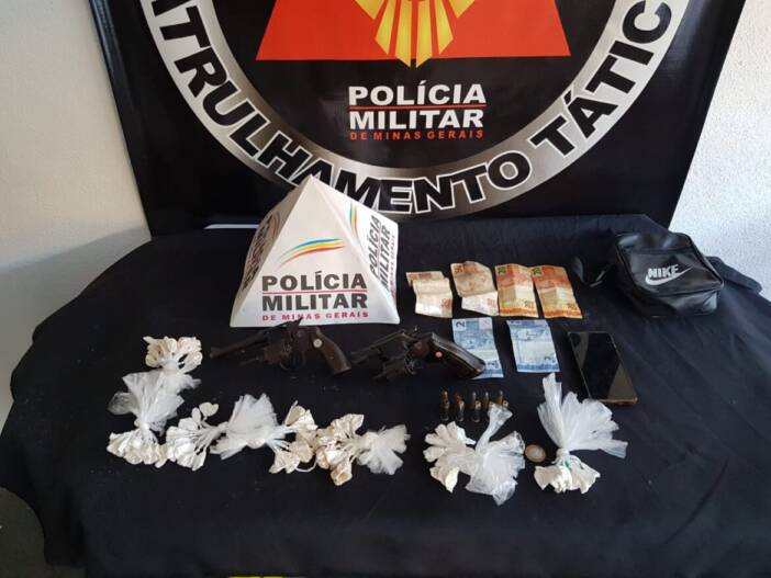 A Polícia Militar de Muriaé apreendeu duas armas de fogo, dinheiro e 80 papelotes de cocaína no bairro Marambaia na tarde desta quinta feira. A operação policial foi realizada na pracinha do bairro onde dois jovens que já seriam conhecidos no meio policial conseguiram fugir do local, após perceberem a aproximação das viaturas, mas deixaram para trás uma bolsa com o material apreendido.