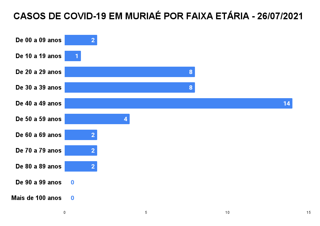 O boletim de hoje também trouxe a confirmação de 43 novas infecções em Muriaé. A faixa etária mais atingida foi a de 40 a 49 anos, com 14 registros.