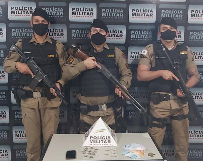 A guarnição PM incursionou pela localidade, vindo a realizar abordagem dos autores, um menor com 17 anos, morador de Divino e outro maior, oriundo de Carangola. Segundo informações os envolvidos se associaram para dominar o tráfico na região.