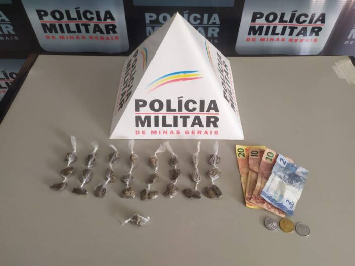 No momento, a equipe percebeu que o jovem, um menor de 16 anos, jogou uma sacola ao solo que foi localizada em seguida pela equipe. Dentro da sacola foi localizado 25 buchas de maconha e com o abordado foi encontrado R$ 43,00 em dinheiro.