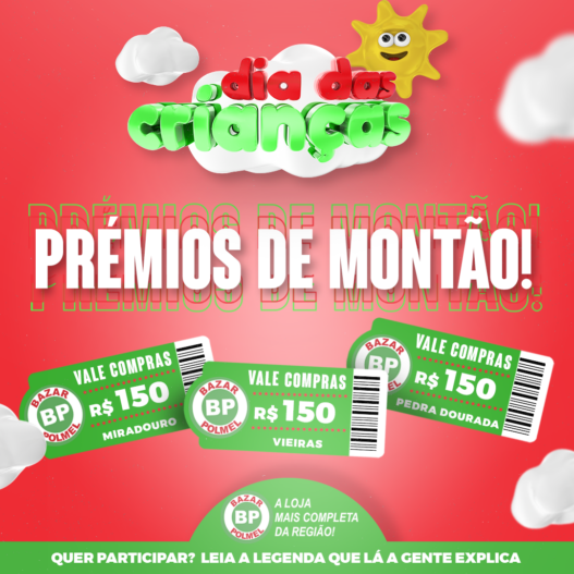 As lojas Bazar Polmel, pensando em uma maneira de recompensar seus clientes por estarem há tanto tempo com eles, resolveram fazer um sorteio de 3 vale compras no valor de R$150,00 reais para cada uma de suas lojas.