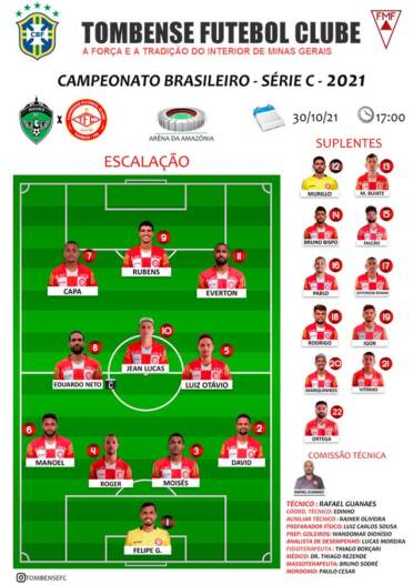 O Tombense venceu o time do Manaus, na tarde deste sábado (30-10), na Arena da Amazônia. Com gol de Jean Lucas nos acréscimos, com essa vitória o gavião carcará está classificado para a Série B do Campeonato Brasileiro de 2022. A festa está marcada para o próximo confronto com Ipiranga no próximo domingo no Estádio Almeidão em Tombos.