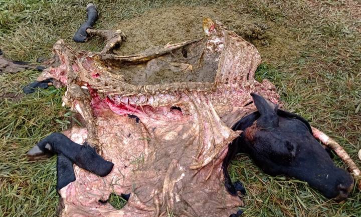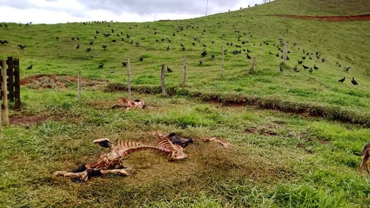 Duas vacas foram sacrificadas por criminosos na madrugada deste sábado (13-11), na região do distrito de Serrania, zona rural de Miradouro. O criminosos fugiram levando toda carne dos animais, deixando somente a ossada para trás.