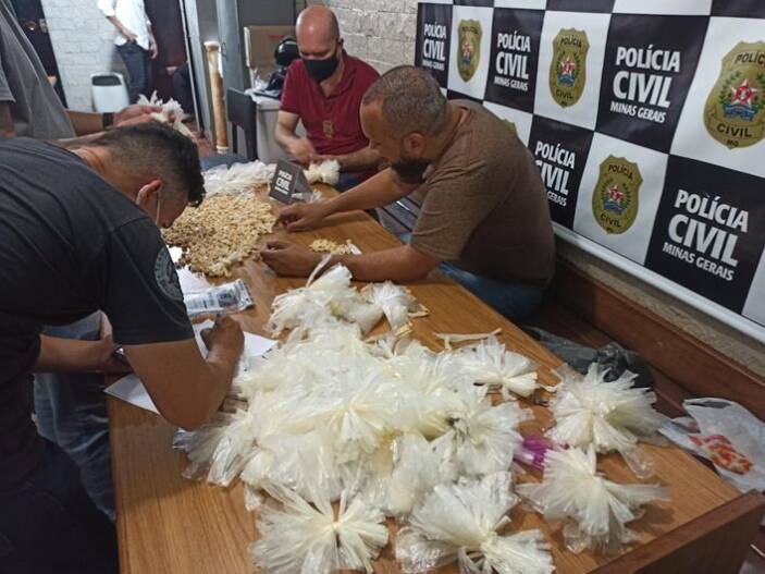 “Além das porções fracionadas, os investigadores apreenderam uma porção maior e avulsa da substância, que seria ainda misturada para venda, totalizando mais de 1,2 kg. Na residência, um homem de 42 anos foi preso em flagrante. A companheira dele, de 30 anos, também foi presa depois de confessar a propriedade das drogas.