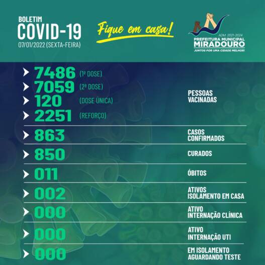 Confira abaixo o boletim epidemiológico, desta sexta-feira (07/01/2022).