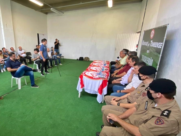 A coletiva contou também com autoridades do município e a diretoria do Nacional que firmaram a parceria e enxerga com bons olhos a junção com o Gavião Carcará.
