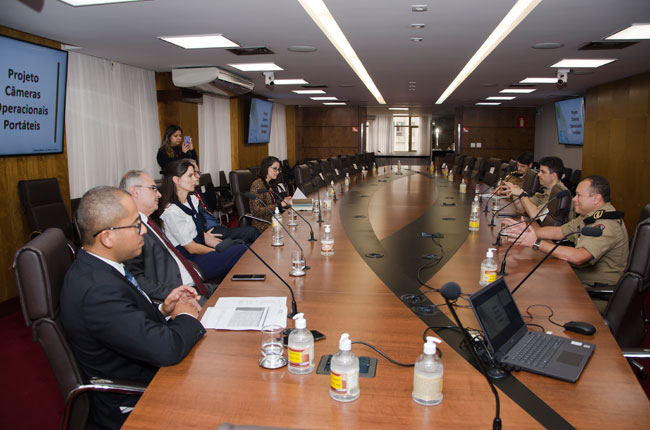 O Ministério Público de Minas Gerais (MPMG) e a Polícia Militar (PM) se reuniram hoje, 5 de maio, na Procuradoria-Geral de Justiça (PGJ), para tratar da construção do projeto-piloto que definirá as formas e locais de uso pela corporação das câmeras operacionais portáteis (ou câmeras corporais) atreladas a instrumentos de menor potencial ofensivo (IMPO), notadamente pistolas de emissão de impulso elétrico (PEIE). O projeto aborda também a criação de normas administrativas pela PM sobre treinamento e utilização desses equipamentos. A reunião foi presidida pelo procurador-geral de Justiça Adjunto Institucional, Carlos André Mariani Bittencourt.