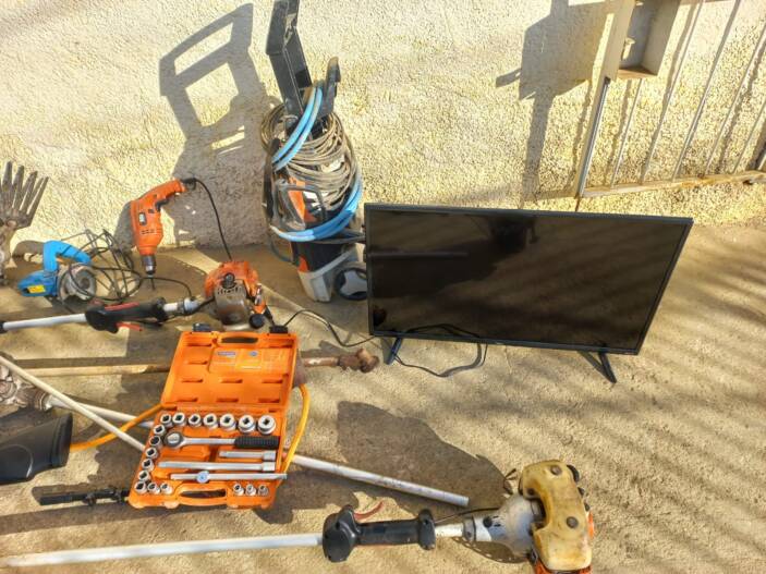 Durante a ação, foram apreendidos diversos objetos, tais como televisão, telefones celulares, máquina derriçadeira, furadeira, luneta e outros equipamentos.