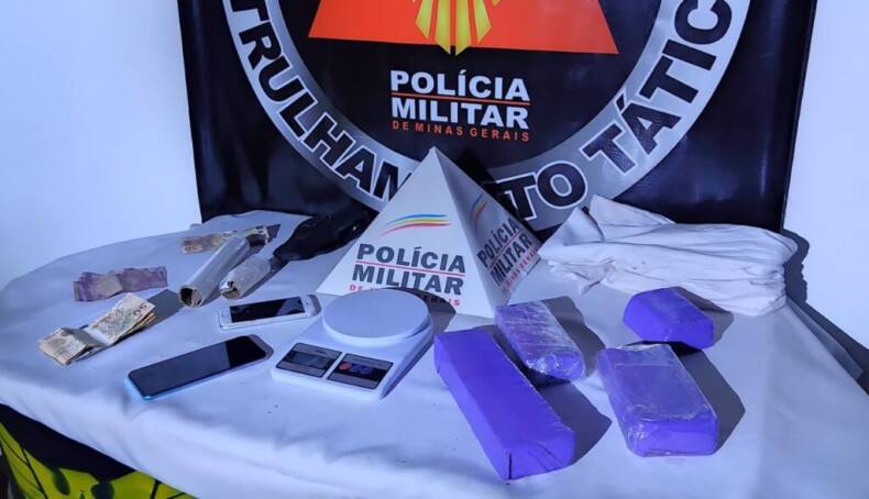 Imediatamente foi acionados as demais equipes via rede de rádio e o imóvel foi cercado. Durante buscas foi localizado um saco contendo em seu interior quatro barras de maconha (sendo uma grande, duas médias e uma pequena). Foram apreendidos também R$ 408,00; uma balança de precisão, rolos de plástico filme; dois celulares e um coldre” informa a Assessoria de Comunicação do Batalhão da PM de Muriaé.