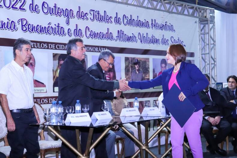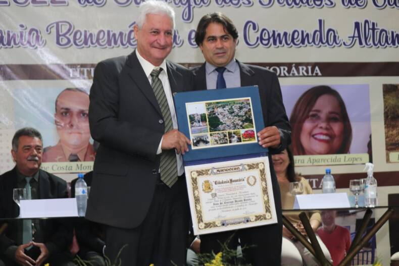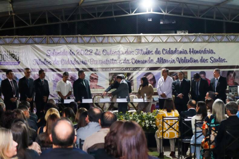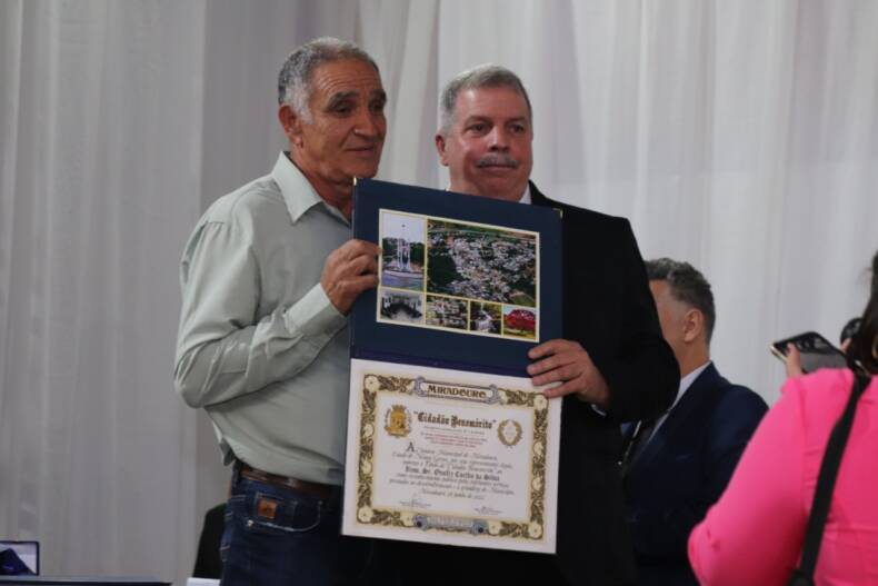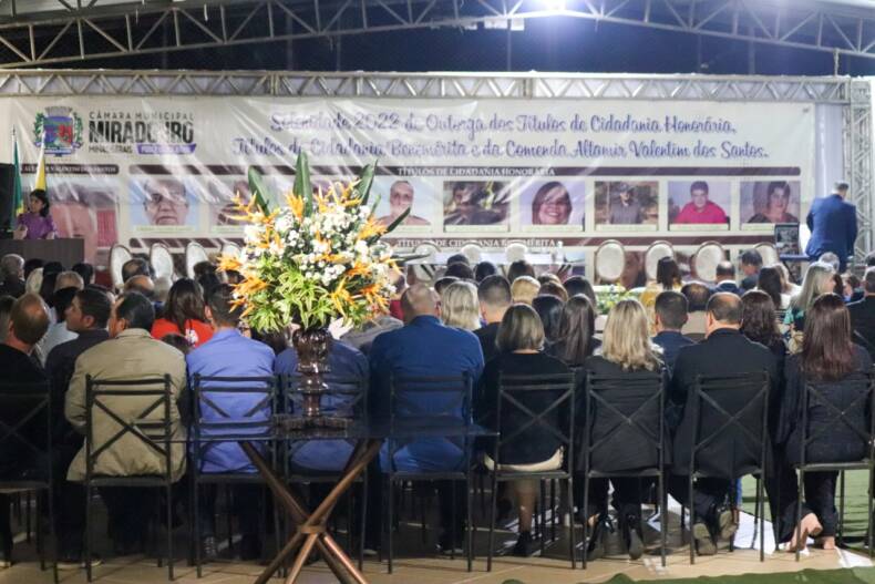 O espaço da APAE Miradouro recebeu na noite do último sábado, 18 de junho, centenas de convidados para presenciarem as entregas dos títulos de Cidadão Benemérito (para os nascidos no município de Miradouro), de Cidadão Honorário (não nascidos no município) e da Comenda Altamir Valentim dos Santos, honraria máxima conferida pela Câmara Municipal.