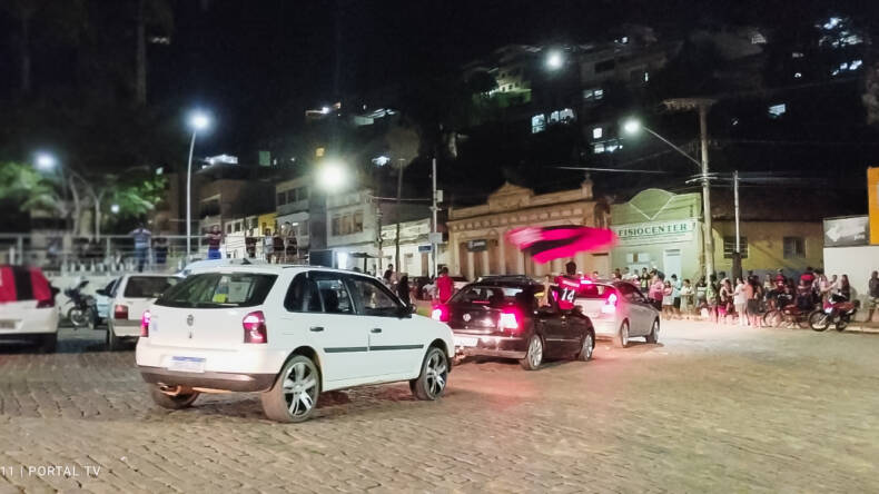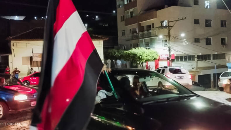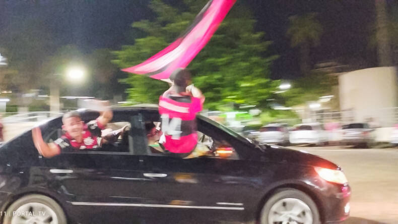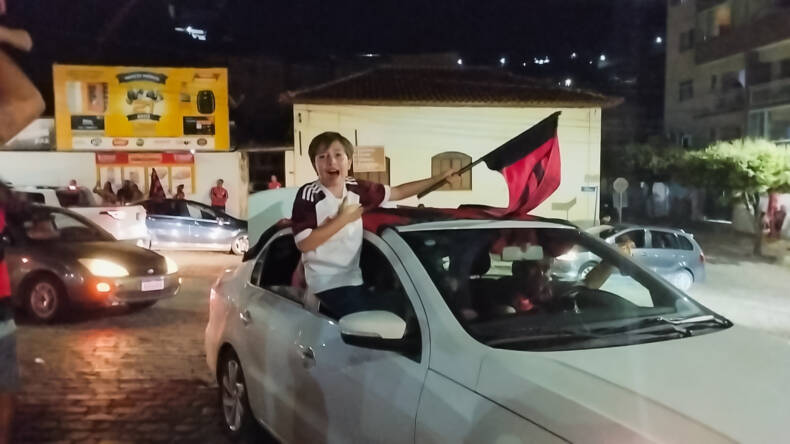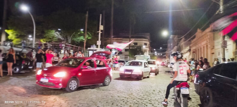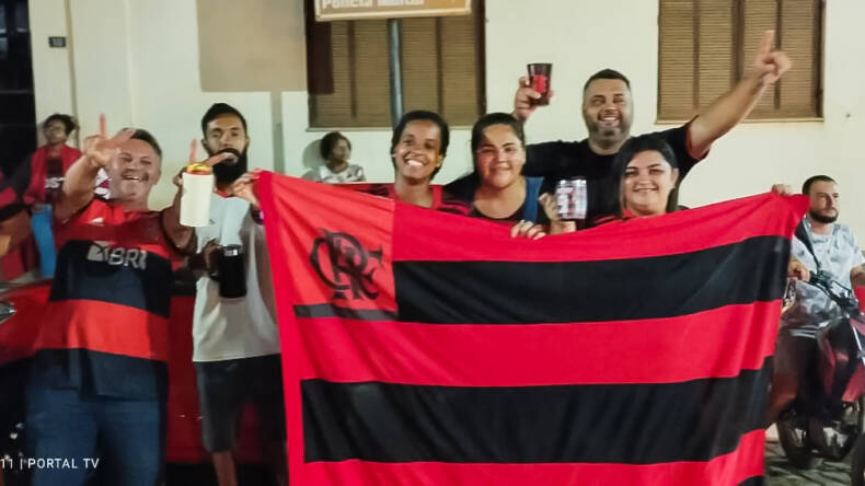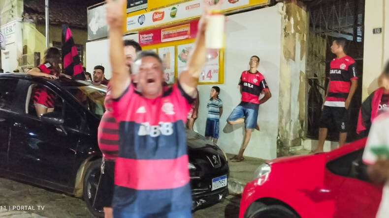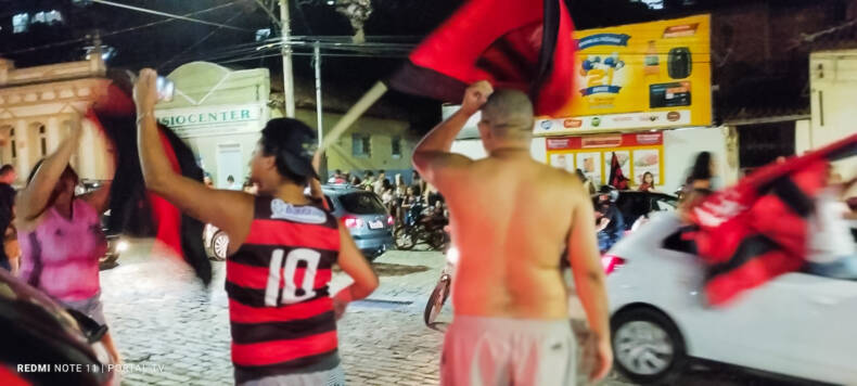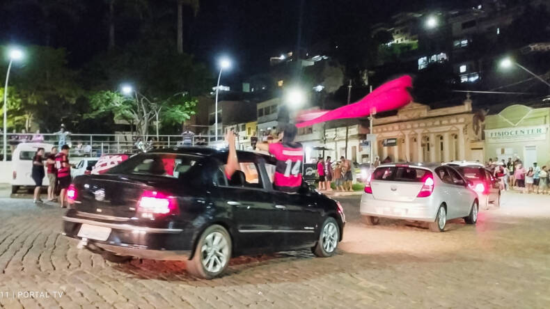 Após o apito final, centenas de torcedores do Flamengo seguiram para a Praça Santa Rita, local tradicional das comemorações de títulos de campeonatos de futebol em Miradouro.