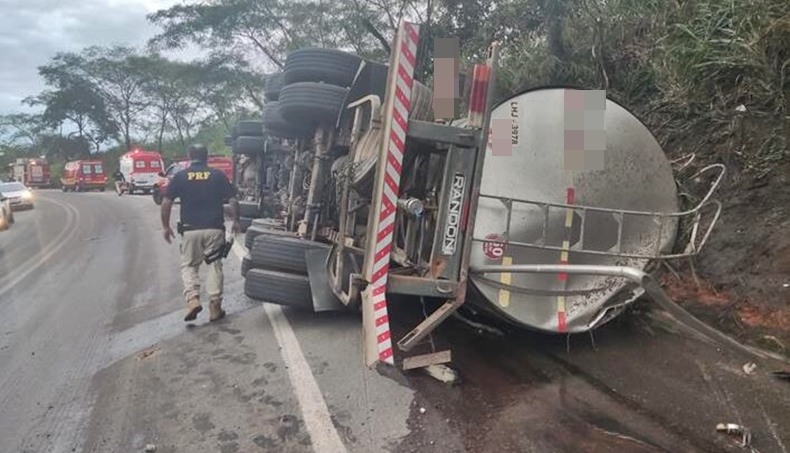 Na tarde desta sexta-feira, dia 23 de dezembro, o Corpo de Bombeiros de Muriaé foi acionado para atender um grave acidente. Segundo informações o motorista de uma caminhão carregado com Soro de Leite com placa de Italva-RJ, teria perdido o controle da direção e tombado na BR 356, próximo da Pedreira São Geraldo em Muriaé. Parte do produto ficou espalhado na pista, sendo realizado a limpeza com objetivo de dar segurança aos motoristas que trafegavam naquela região. O caminhoneiro morreu no local, sendo a morte constatada por uma unidade do SAMU de Muriaé.