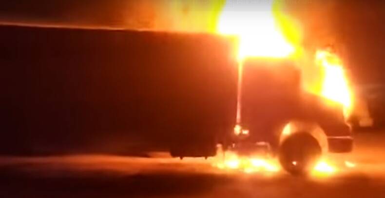 Segundo uma testemunha, o incêndio começou em um outro caminhão e o fogo se alastrou para o segundo veículo (foto). Conforme o vídeo encaminhado para a redação do O Noticiário, haviam outros caminhões no loca, mas, segundo a testemunha, eles foram retirados a tempo.