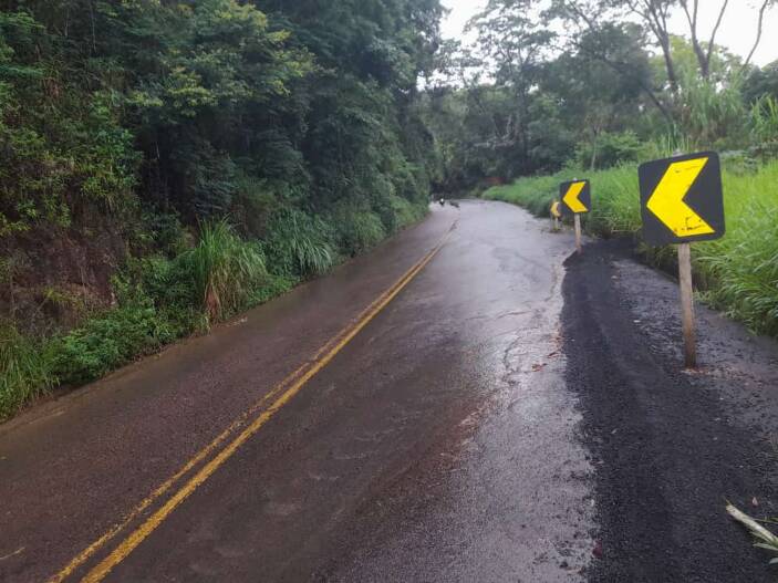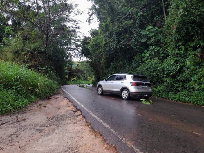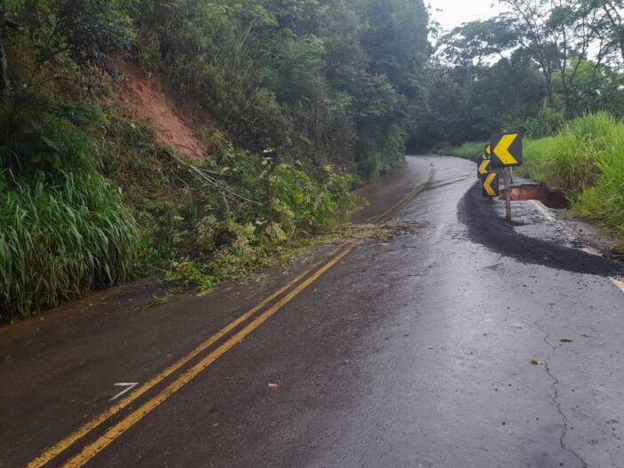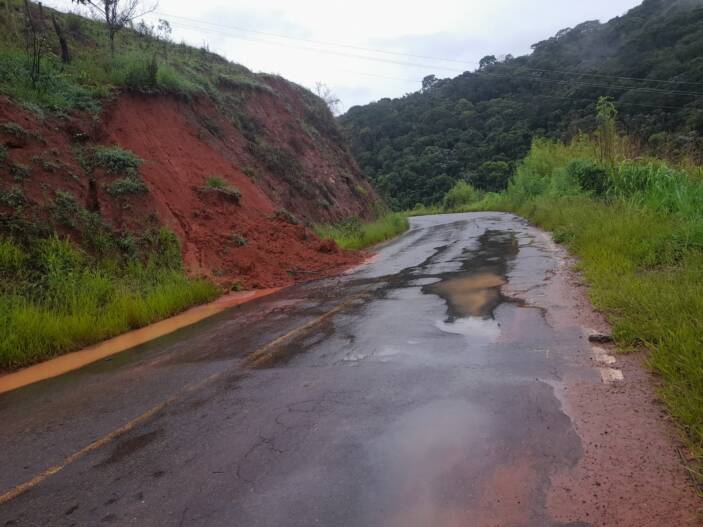 Registro de queda de barreiras na BR 482, entre Fervedouro e Carangola