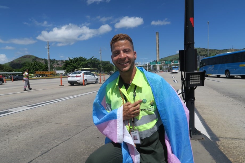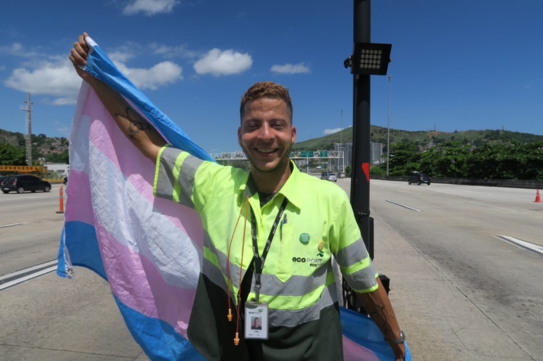 Já no Rio de Janeiro é Gael Jardim que comemora sua entrada no mercado de trabalho. Formado em Cinema e Administração, ele é o único colaborador transgênero da Ecoponte, para a qual exerce o cargo de operador de pedágio há nove meses. “O que pesou na minha decisão foi a estrutura da empresa. Embora eu tenha estudado para exercer outros papéis, aqui eu tenho chances de crescimento, de participar de processos internos de seleção, como todos os outros colaboradores. Isso é muito importante. A empregabilidade traz dignidade”, diz ele.