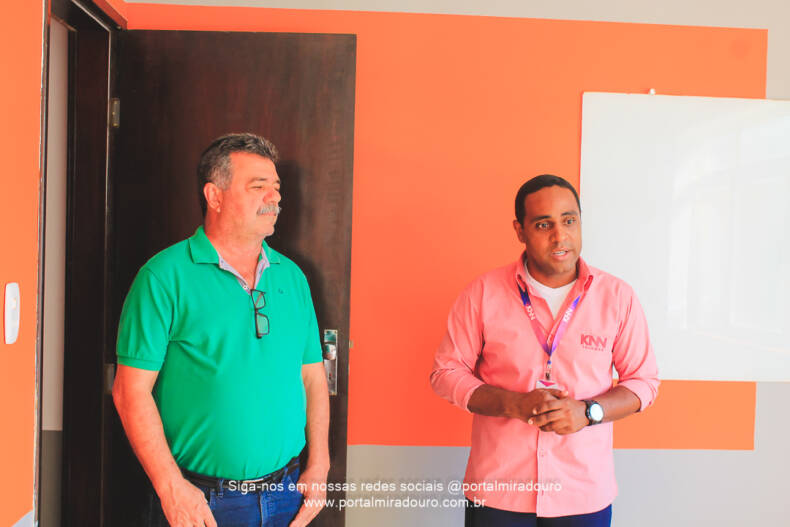 Prefeito Cloves Botelho ao lado do Almir Santiago, propritário da KNN Idiomas de Miradouro