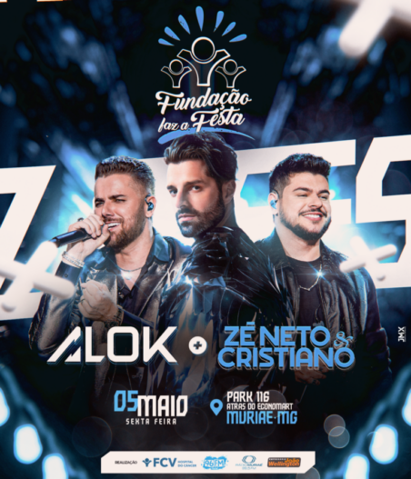 Muriaé entra de vez para o cenário de grandes eventos do Brasil. “Fundação Faz a Festa” 2° edição, traz para a cidade um dos maiores djs do mundo, Alok e uma das mais consagradas duplas do sertanejo, Zé Neto e Cristiano, juntos em uma só noite.