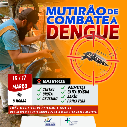 15 de março de 2023 Portal MiradouroSeja o primeiro a comentar on MUTIRÃO DE COMBATE À DENGUE EM MIRADOURO
