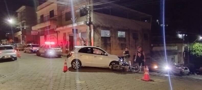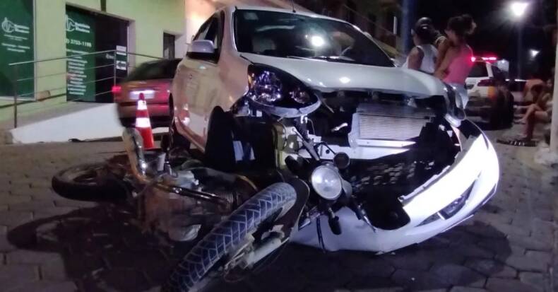 Duas pessoal ficaram feridas após colidir com um carro no cruzamento da Rua Marechal Floriano Peixoto e Ezequiel da Silveira, no centro de Miradouro. O acidente aconteceu por volta das 19 horas desse sábado, dia 25 de março. Segundo informações, o motorista do veículo estava na Rua Marechal Floriano Peixoto, momento em que tentou fazer uma conversão para a Rua Ezequiel da Silveira, quando foi atingido pela motocicleta.