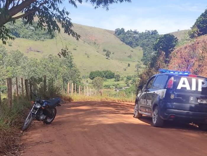 Durante levantamentos em relação a outo furto de motocicleta ocorrido em Miradouro, a equipe da 34ª Delegacia de Polícia Civil de Miradouro, unidade que integra a 4ª Delegacia Regional de Muriaé, pertencente ao 4º Departamento, obteve a informação de que uma motocicleta estaria abandonada em uma estrada da Zona Rural do Município de Vieiras, próximo a um “viradouro”. De pronto a equipe iniciou um intenso rastreamento pelas estradas rurais do Município vindo a localizar a motocicleta a 12 km do asfalto.