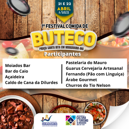 20 de abril de 202320 de abril de 2023 Portal MiradouroSeja o primeiro a comentar on AGENDA DO PORTAL: NESTE FINAL DE SEMANA TEM “COMIDA DE BUTECO” EM MIRADOURO