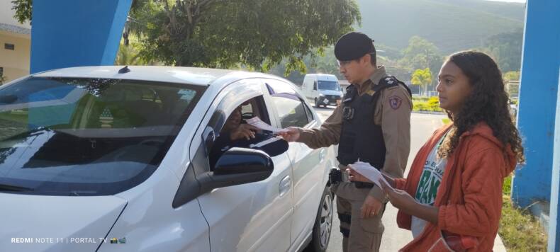 Em alusão à Campanha Nacional Maio Amarelo de valorização à vida no trânsito, a Prefeitura de Miradouro, através da Secretaria Municipal de Educação e Polícia Militar, realizou na manhã desta terça-feira, dia 16 de maio, uma blitz educativa na Avenida Juscelino Kubitschek, próximo do Portal da cidade.