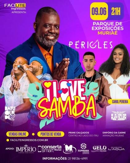 I LOVE SAMBA – 09 DE JUNHO NO PARQUE DE EXPOSIÇÕES DE MURIAÉ!