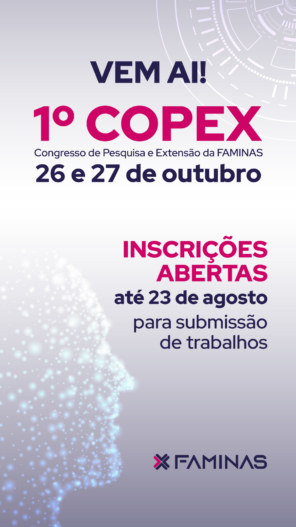 Sobre o COPEX FAMINAS – De acordo com Alexandre Bittencourt, coordenador de Pesquisa da FAMINAS, o Congresso abarcará a programação de outros três eventos da instituição: o Encontro Internacional de Iniciação Científica e Pós-Graduação, que, em 2023, chega a sua 20ª edição; além do I Simpósio de Extensão da FAMINAS e a I Mostra Tecnológica da Educação Básica.
