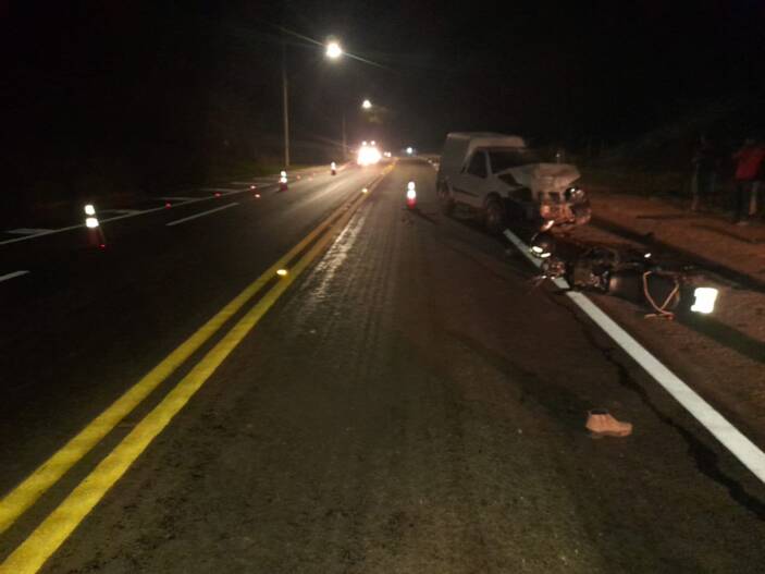 Um grave acidente foi registrado no início da noite desta segunda-feira, dia 26 de junho na BR 116, próximo do Posto Xodozão em Fervedouro. Segundo informações colidas no local pelo repórter Márcio Prado do Portal Miradouro, o condutor da motocileta, ainda não identificado, não resistiu ao impacto do acidente e faleceu. O motorista da Fiorino foi socorrido e encaminhado para o Hospital Santa Bárbara de Fervedouro.