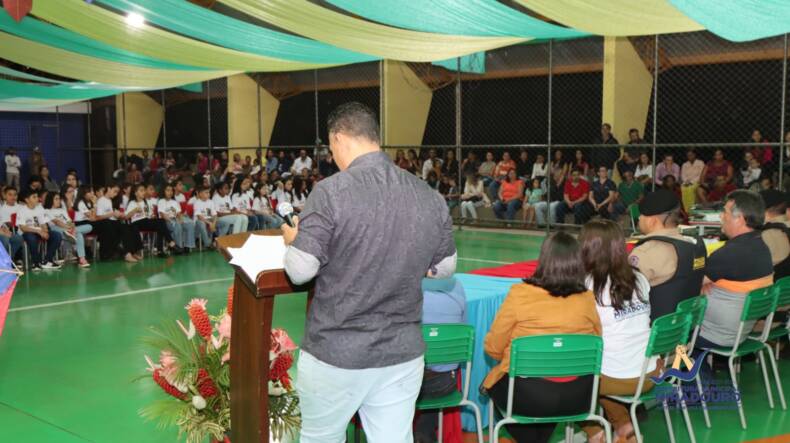 Aconteceu na última terça-feira, dia 11 de julho, a cerimônia de formatura do Programa Educacional de Resistência às Drogas e à Violência – PROERD, na Quadra Poliesportiva da Escola Municipal Doutor Olavo Tostes, com turmas dos quintos e sétimos anos do ensino fundamental.