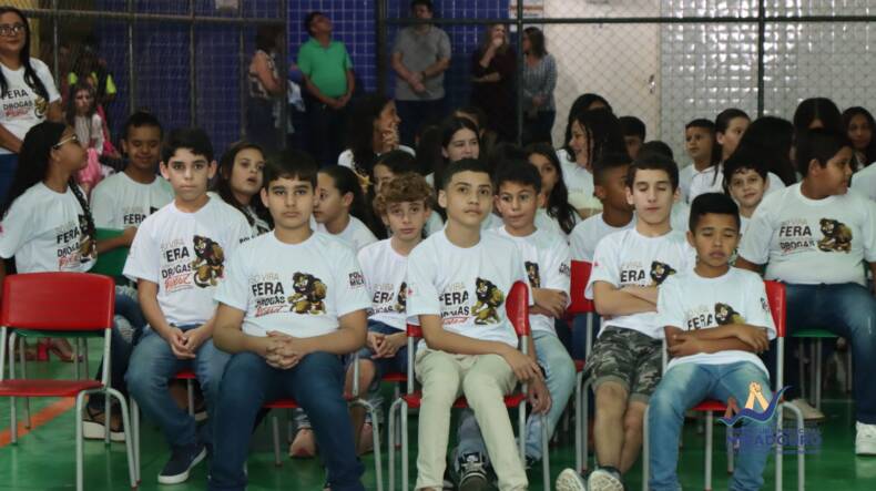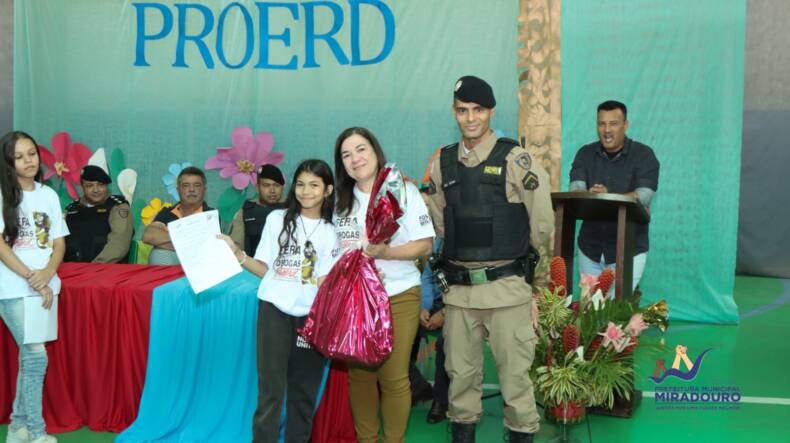 Aconteceu na última terça-feira, dia 11 de julho, a cerimônia de formatura do Programa Educacional de Resistência às Drogas e à Violência – PROERD, na Quadra Poliesportiva da Escola Municipal Doutor Olavo Tostes, com turmas dos quintos e sétimos anos do ensino fundamental.