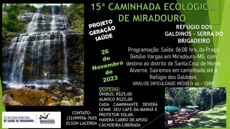 15ª CAMINHADA ECOLÓGICA DE MIRADOURO, DIA 26 DE NOVEMBRO Destaque ESPORTE 30 de outubro de 2023 Portal MiradouroSeja o primeiro a comentar on 15ª CAMINHADA ECOLÓGICA DE MIRADOURO, DIA 26 DE NOVEMBRO