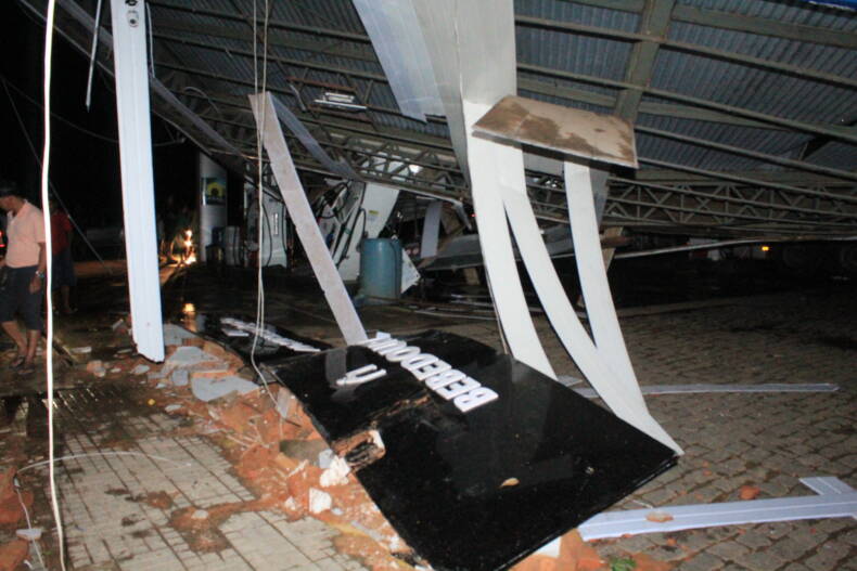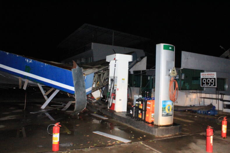 A fúria da tempestade deixou sua marca no posto Nazarão Miradouro, com veículos que estavam sendo abastecidos sofrendo danos consideráveis, uma carreta que estava na bomba abastecendo ficou preso debaixo da estrutura.
