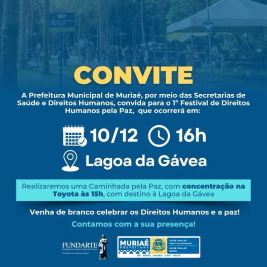 O Festival faz um convite para refletirmos sobre a importância da Declaração Universal dos Direitos Humanos, e suas contribuições para as grandes conquistas da humanidade. É também um lembrete sobre a necessidade de defendermos os direitos humanos no nosso dia a dia. “A paz não é um sonho inocente” e sim o único caminho para uma humanidade melhor. “A Prefeitura de Muriaé propõe um amplo debate sobre direitos humanos no Município, ressaltando a importância da construção do sentimento de pertencimento à cidade e de uma convivência cidadã nos espaços públicos e, a Secretaria Municipal de Direitos Humanos é o meio para se chegar a este diálogo”, disseram os organizadores. Serão realizadas atividades de diversos segmentos, oficinas, shows, intervenções artísticas, além de ações promovidas por organizações da sociedade civil.