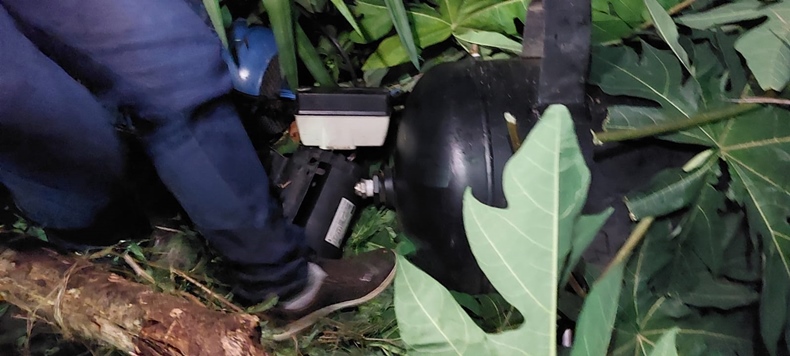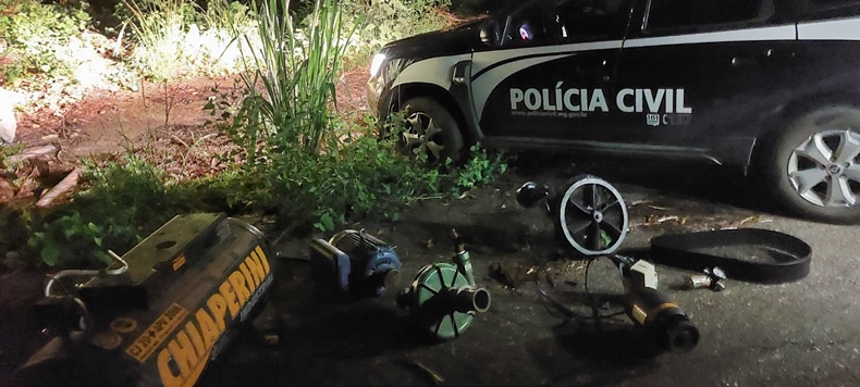 Os equipamentos estão avaliados em aproximadamente em R$ 40 mil reais. Os quais, se tratam de um motor de 15cv, uma bomba de água, um compressor de grande porte, uma máquina de soldar alumínio, materiais os esses, que estavam escondidos sob a vegetação, nas proximidades de um laticínio desativado, localizado próximo a um clube, as margens da BR 356, sentido distrito do vermelho.