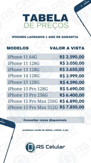Não perca essa oportunidade incrível na AS Celular! Adquira seu iPhone lacrado com 1 ano de garantia a um preço imperdível.