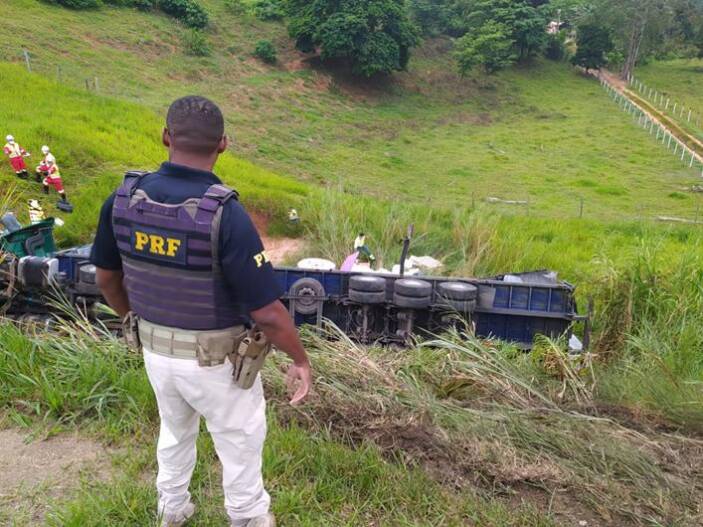 Na manhã desta quarta-feira (10), um grave acidente foi registrado pela Polícia Rodoviária Federal (PRF) de Muriaé, na BR-116, próximo ao Trevo de Itamuri. Por volta das 06h30, uma carreta que transportava produtos químicos perigosos, incluindo tinta inflamável, ácido, verniz, entre outros, saiu da pista e tombou em um barranco às margens da rodovia, resultando em uma situação de risco iminente tanto para os ocupantes do veículo quanto para o ambiente ao redor.