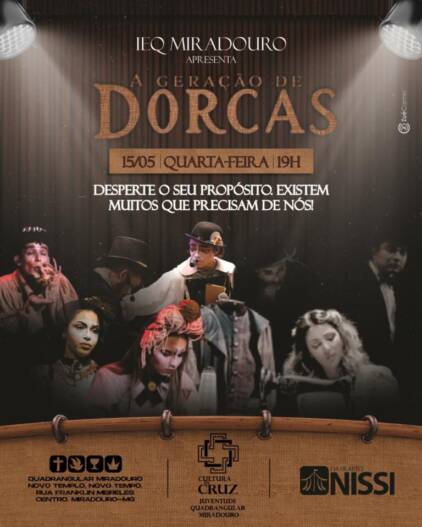 A comunidade de Miradouro está convidada a participar de uma noite especial de teatro e reflexão na Igreja do Evangelho Quadrangular, onde será apresentado o espetáculo “Geração de Dorcas”, uma produção da renomada companhia teatral “Cia Nissi”. O evento ocorrerá no dia 15 de maio, às 19h, com entrada franca, prometendo uma experiência única e profundamente emocionante.